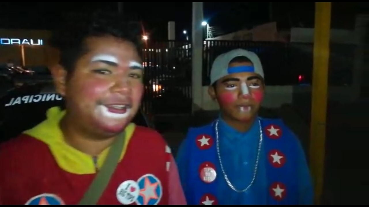 “Siempre que venimos, nunca nos dejan trabajar y nos piden una cuota de 300 pesos para poder presentarnos, pero hoy nos lo negaron porque el ‘Camarita’ lo tenía rentado al ‘Huesitos’, y lo que hizo el payaso fue hablarle a sus familiares y le pegaron a mi hermano con un casco”, comentó uno de los artistas callejeros.