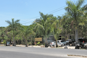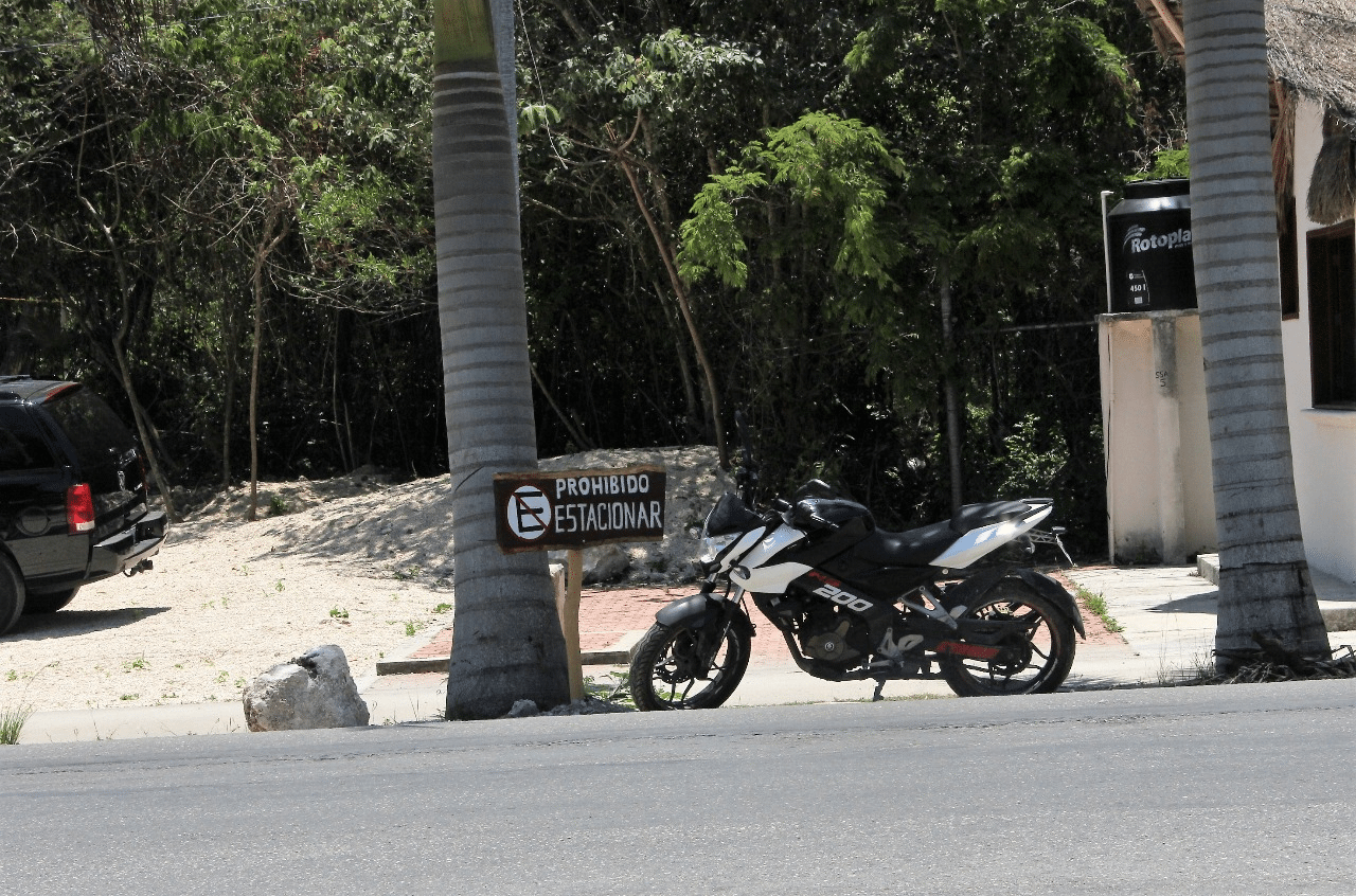Tulum.- Un centro de hospedaje se apoderó de la banqueta frente a la Dirección de Seguridad Pública y Tránsito Municipal, además de colocar piedras en la calle, para evitar que gente se estacionen en el lugar, pese a ser vía pública.