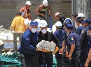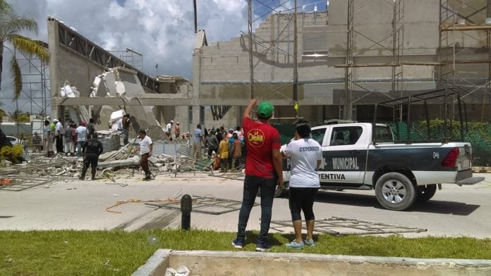 Puerto Morelos.- Una construcción se desplomó a un costado de la sucursal de Super Akí en este municipio, ubicada sobre la carretera federal, a la entrada de esta comunidad, que dejó como saldo 14 personas lesionadas, un fallecido y tres desaparecidos.