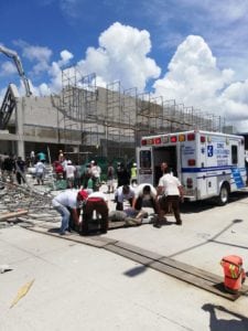 Además dijo que 14 trabajadores de la construcción fueron trasladados en ambulancias particulares y del municipio a hospitales de Cancún por diversas lesiones, dos de ellos reportados como graves.