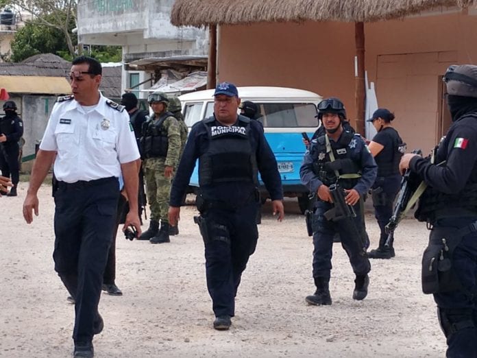 Cancún.- Policias municipales sostuvieron un enfrentamiento armado contra sicarios en el asentamiento irregular Avante, resultando en la detención de dos sujetos.