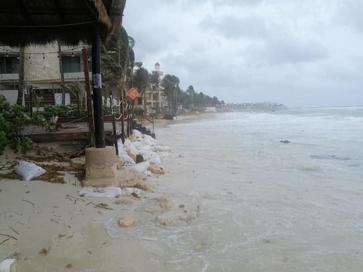 Playa del Carmen,Quintana Roo.-Tal y como sucedió en tiempos del huracán Wilma, las principales playas de Playa del Carmen y la Riviera Maya sufrieron una importante erosión, en el que incluso las olas golpean contra el concreto.