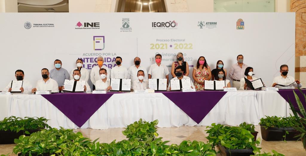 Chetumal.- El gobernador Carlos Joaquín atestiguó la firma del Acuerdo por la Integridad Electoral que busca unir esfuerzos que permitan hacer de las elecciones íntegras el estándar cotidiano de los procesos comiciales.