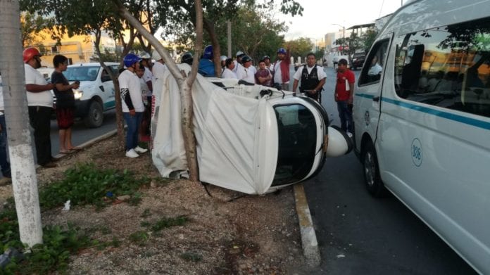 Playa del Carmen.- Un mototaxista se le cruzó al camino de una combi, por ganar un pasajero, y termina colisionado, con su operador con fractura en el brazo, en el tercer parque de Villas del Sol.