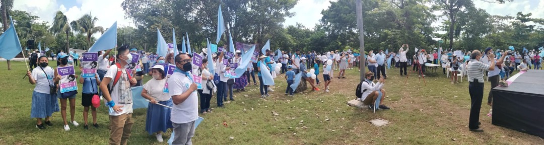 Cancún.- Cerca de 100 personas portando banderas celestes se reunieron en el Kilómetro Cero de la Zona Hotelera para expresar su rechazo a la despenalización del aborto ordenada por la Suprema Corte de Justicia de la Nación.