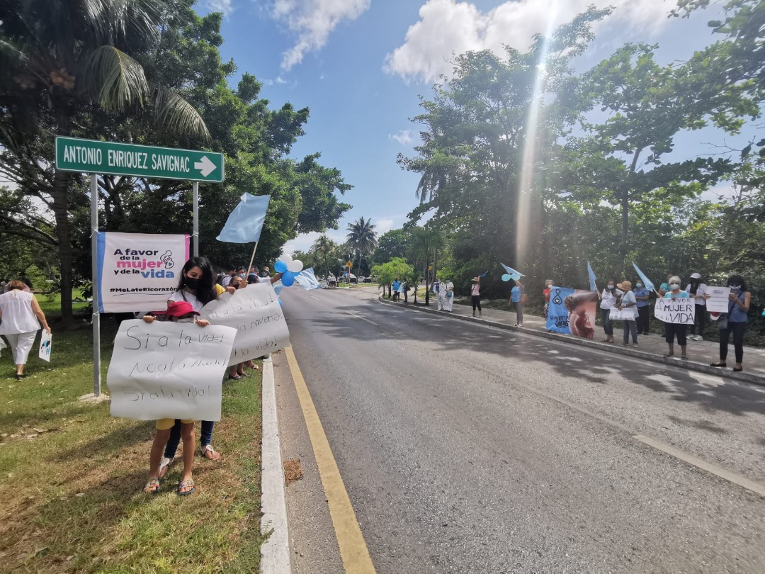 Los ciudadanos, de entre 10 o 12 distintos grupos “provida” se colocaron a un costado del bulevar Kukulcán, para ondear sus banderas y mostrar sus carteles a los automovilistas que ingresaban a la Zona Hotelera, para luego congregarse en el área verde del camellón central, para escuchar varios discursos de activistas.