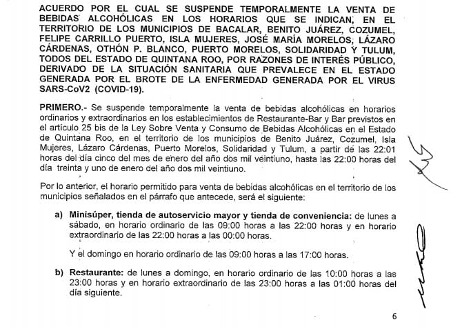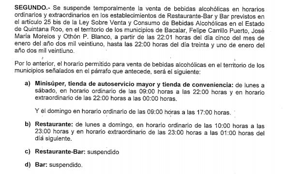 Quintana Roo.- La Secretaría de Finanzas y Planeación (Sefiplan) publicó los horarios de venta de alcohol en todo el estado, el cual se ha mantenido desde que inició la pandemia.