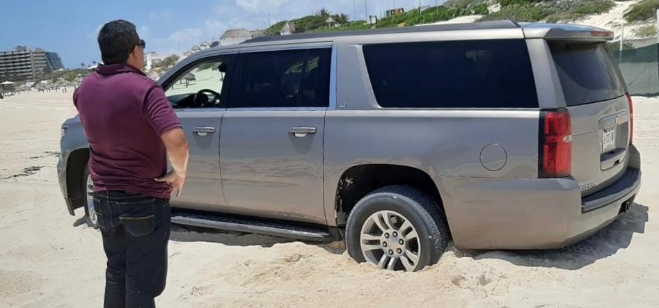 Primero las llantas se atascaron y la unidad quedó varada, por lo que tuvo que llamar a una grúa; sin embargo no contó que elementos de la Policía Turística procederían a llevárselo detenido y denunciarlo por atentar contra el orden público y daños al medio ambiente.