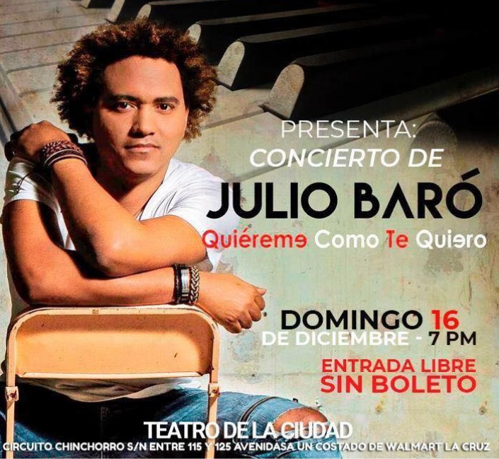“Es la primera vez que se presentará en Playa del Carmen, como solista. Para nosotros es muy gratificante que artista como Julio Baró, se presenten en nuestra ciudad, y de manera gratuita”, subrayó el director de Cultura.