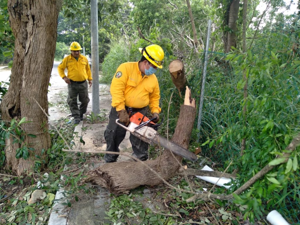 Desde temprana hora del domingo, y una vez alejado de las costas la tormenta tropical, personal de Servicios Públicos y Bomberos, se dieron a la tarea de retirar ramas y vegetación arbórea derribada por el embate de los vientos en parques, vialidades y puntos estratégicos en las colonias para evitar cortes en el tránsito de personas y vehículos. Mientras, permanecen los recorridos de vigilancia, a cargo de las fuerzas castrenses y policiacas, para mantener el orden social.