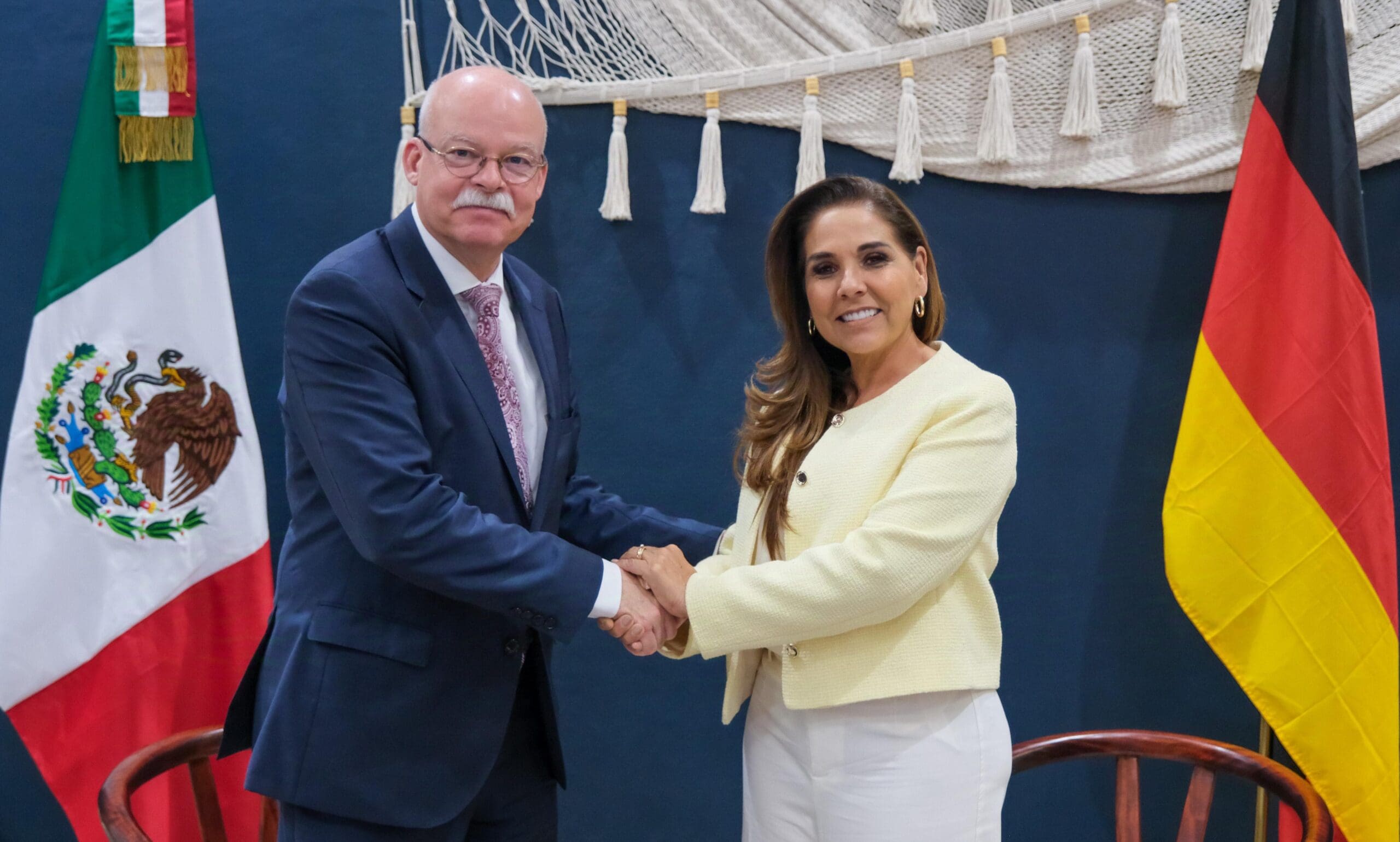 Chetumal.- La gobernadora Mara Lezama Espinosa se reunió con el Embajador de la República Federal de Alemania en México, Clemens von Goetze, para fortalecer y estrechar los lazos de cooperación diplomática, turística e inversión en Quintana Roo, que permitan un mayor bienestar y desarrollo para las y los quintanarroenses.