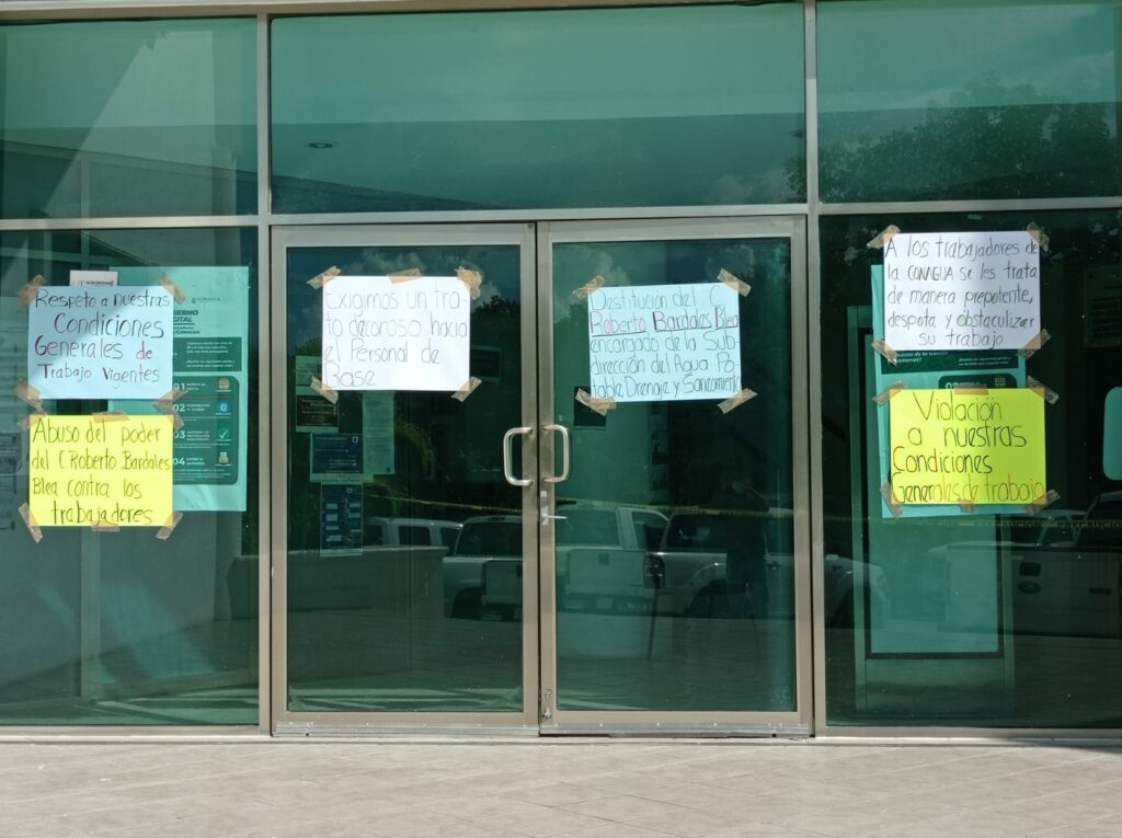 Chetumal.- Las instalaciones de la Comisión Nacional del Agua (Conagua) continúan tomadas por trabajadores sindicalizados que exigen la destitución de Roberto Bardales Blea, encargado del área de agua potable.