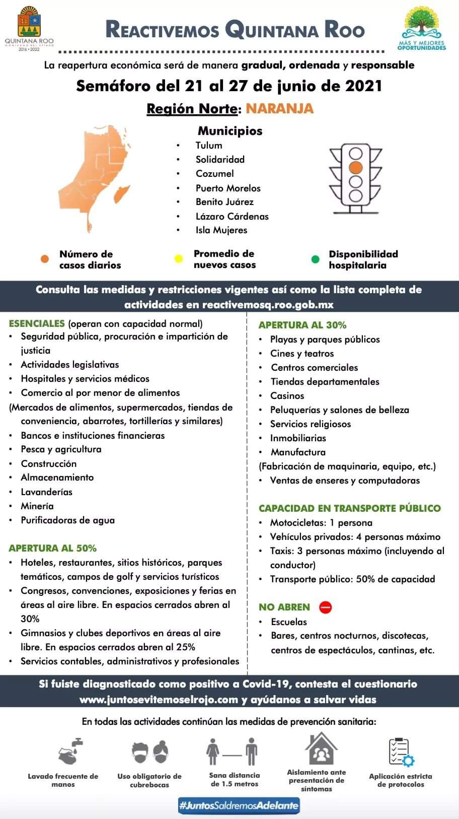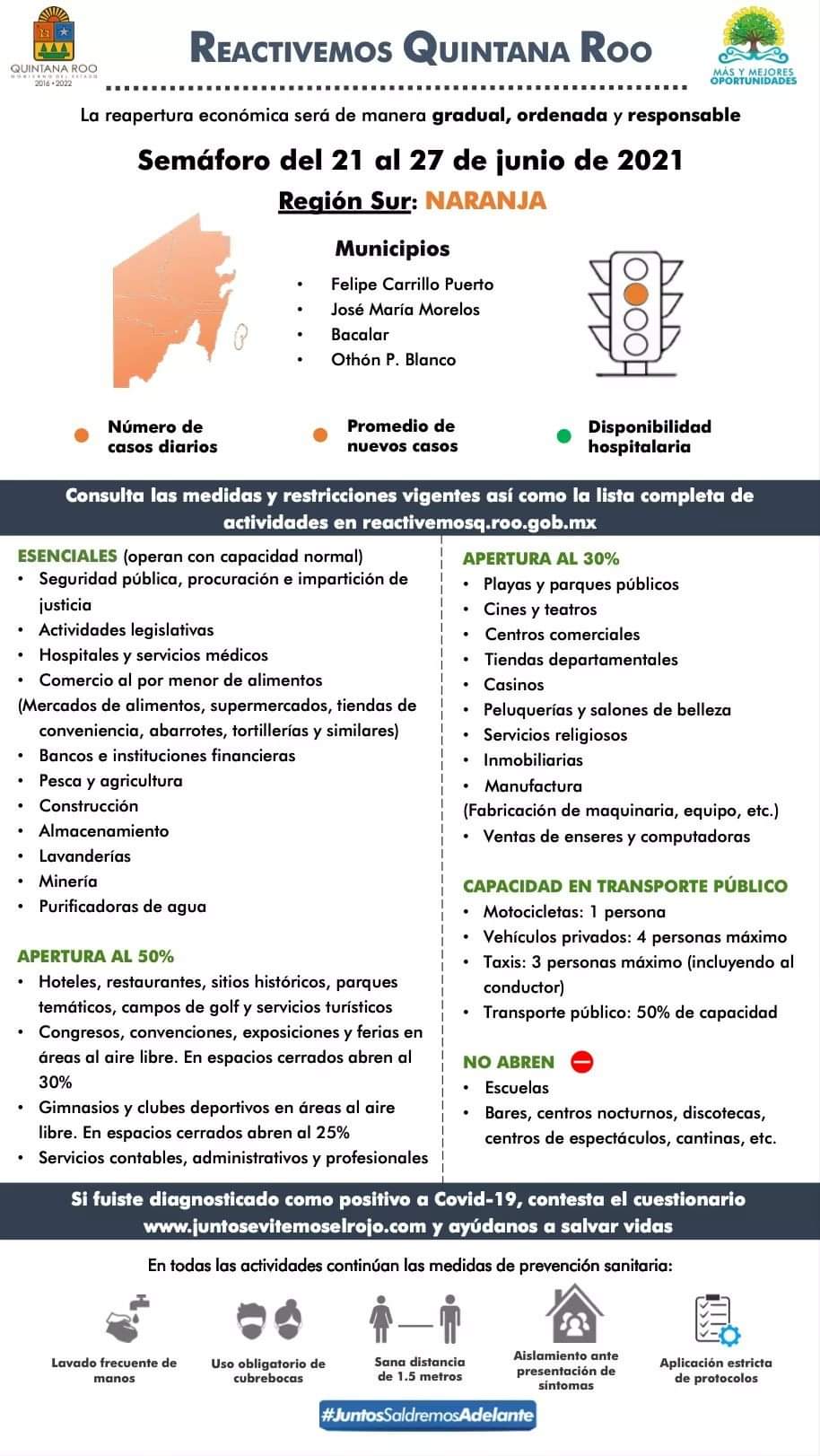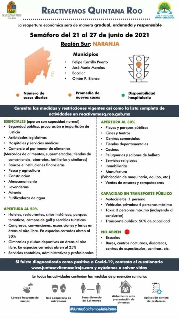 El semáforo epidemiológico en Quintana Roo se mantendrá en naranja durante la próxima semana, así lo anunció el gobernador Carlos Joaquín.