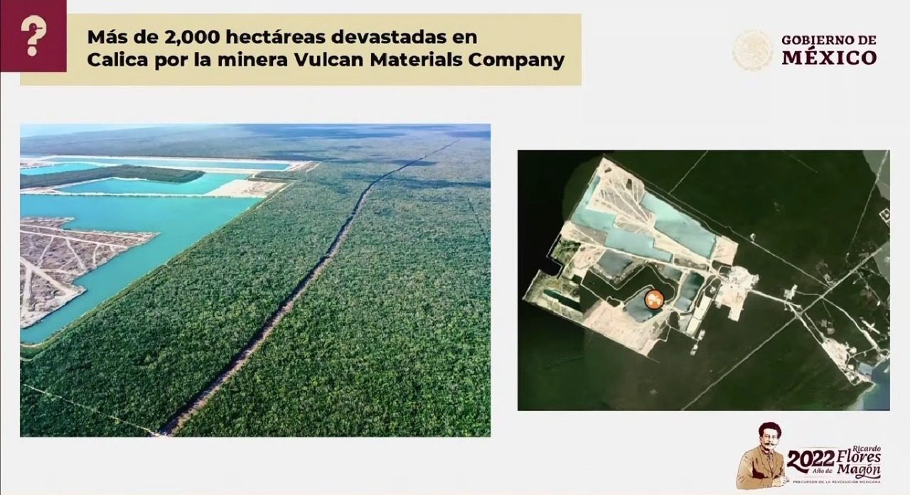 Justificó la destrucción de 300 hectáreas de vegetación por el paso del Tren Maya en el tramo 5, en comparación con lo que ha hecho Calica durante más de 20 años en más de 2 mil hectáreas, para extraer material pétreo que llevan a Estados Unidos.