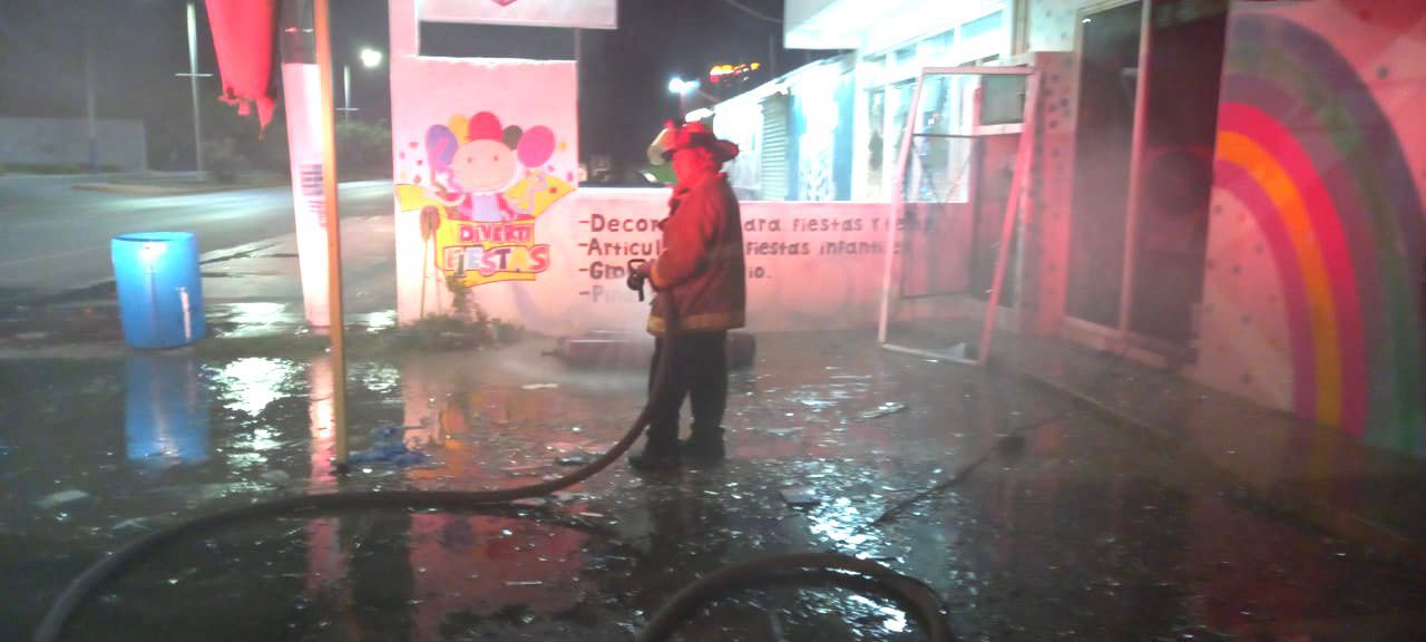 Fue una llamada al 911 la que alertó por el incendio de un vehículo en la avenida Constituyentes con 90, pero al acudir bomberos, vieron que se trataban de los dos locales de “DivertiFiestas”, cada uno con un incendio en su interior.