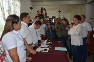 De manera conjunta, los presidentes en José María Morelos del PRD, PAN y MC, Erick Montalvo Peña, Ariel Mena Pacab y Obdulia Moo Poot, respectivamente, entregaron el convenio de coalición al consejero presidente del Ieqroo local, Manuel de Jesús Gómez Yeh.
