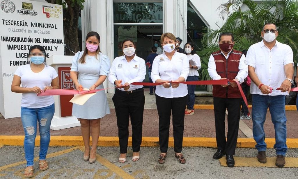 Playa del Carmen, Quintana Roo.-La presidenta Laura Beristain Navarrete invitó a los ciudadanos a aprovechar el máximo descuento del 25 por ciento del 1 al 15 de enero, al inaugurar el programa del impuesto predial y licencias de funcionamiento 2021, donde manifestó que el Ayuntamiento de Solidaridad se mantiene con finanzas sanas y cero deuda.