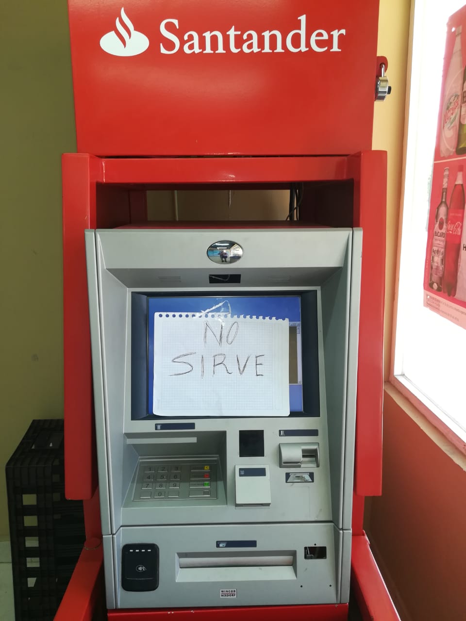 Uno de estos cajeros, en la tienda de conveniencia “Circle K”, permanece averiado desde hace poco más de un mes, con un cartel de “no sirve”.