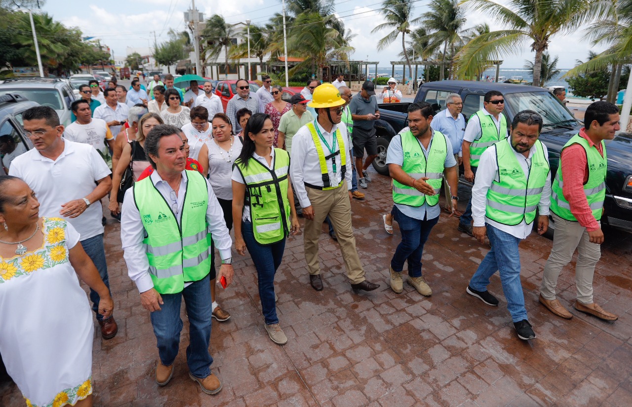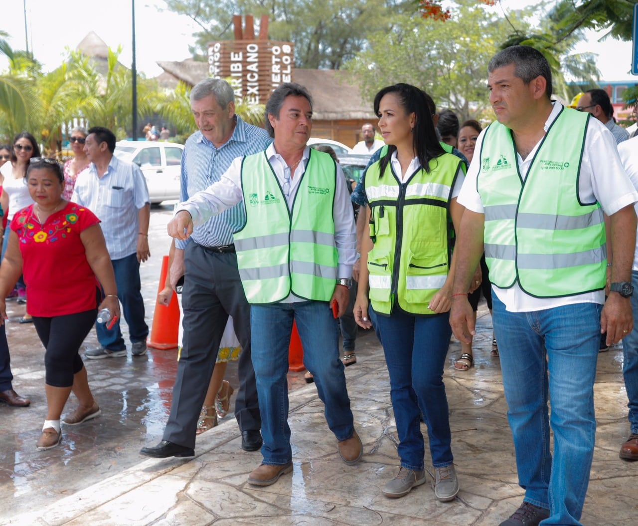 Puerto Morelos.- La presidenta municipal Laura Fernández Piña realizó hoy un recorrido de supervisión de las obras que se llevan a cabo en el primer cuadro del Casco Antiguo, como parte de la transformación y modernización del destino, a fin de constatar personalmente el avance que registran.