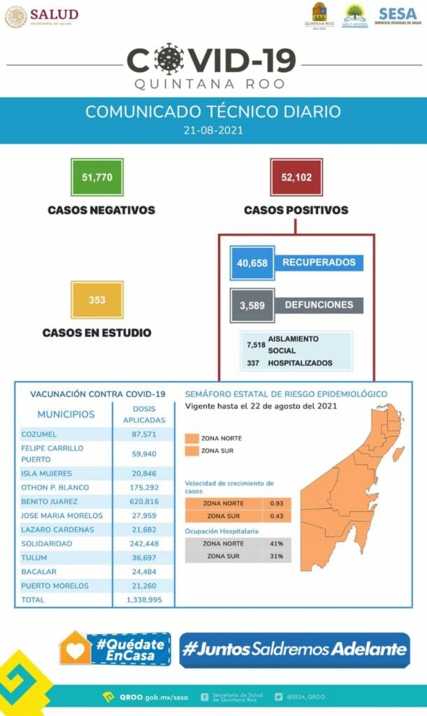 Surgen 612 nuevos casos de COVID-19 y 29 muertes más en Quintana Roo