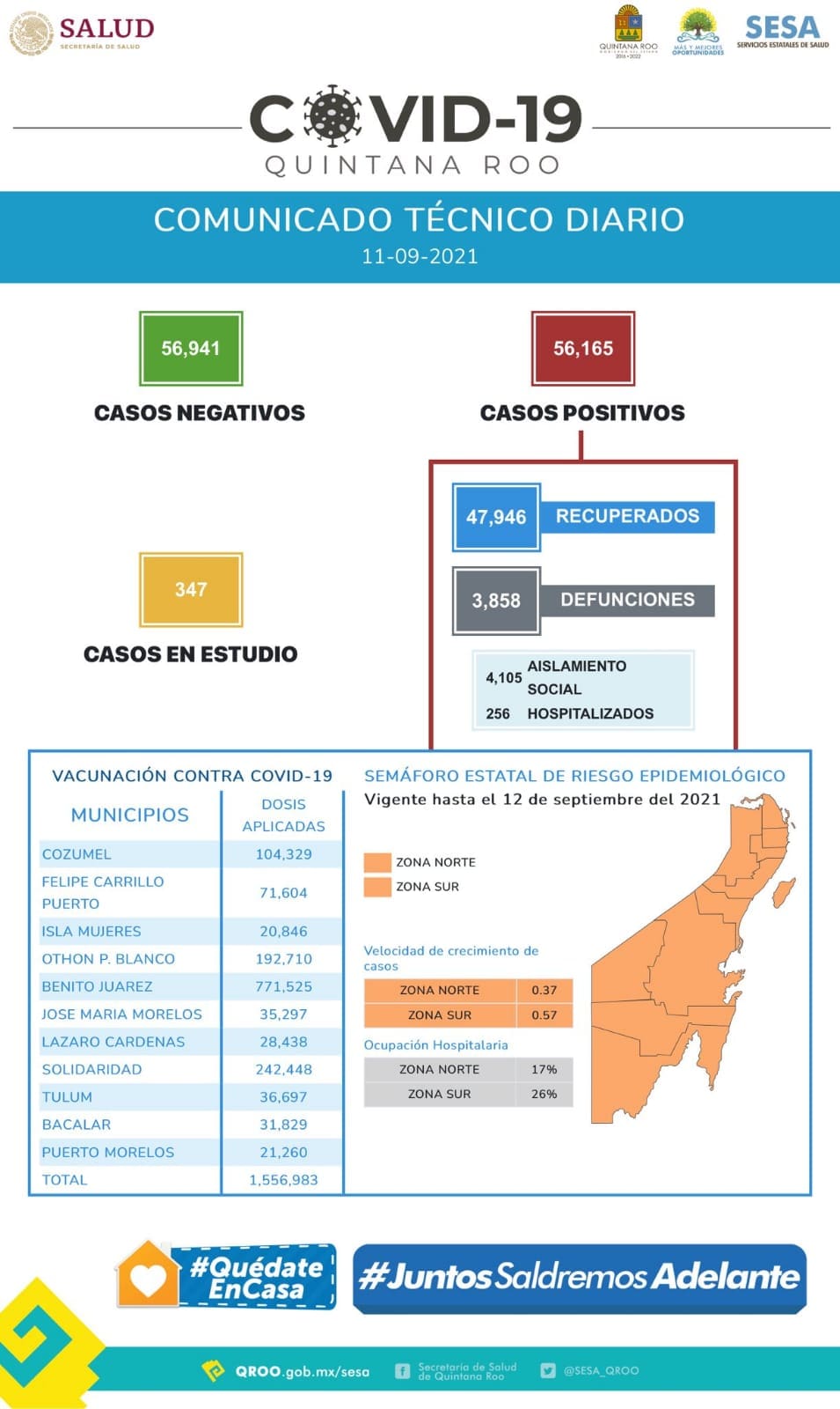 Chetumal.- Las cifras reportadas esta tarde por la Secretaría de Salud estatal reflejan un descenso en la curva de contagios y de personas fallecidas por COVID-19.