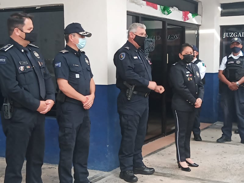 estuvo presente el Secretario Estatal de Seguridad Pública, Lucio Hernández, acompañado del titular de la corporación municipal, Rubén Oyarvide Pedrero, quienes otorgaron el nombramiento de la oficial Karina Cabrera, frente al personal de la Policía Turística.