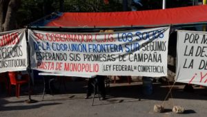 El plantón es integrado por 80 socios de “Frontera Sur” y permanecerá afuera de Sintra por tiempo indefinido.