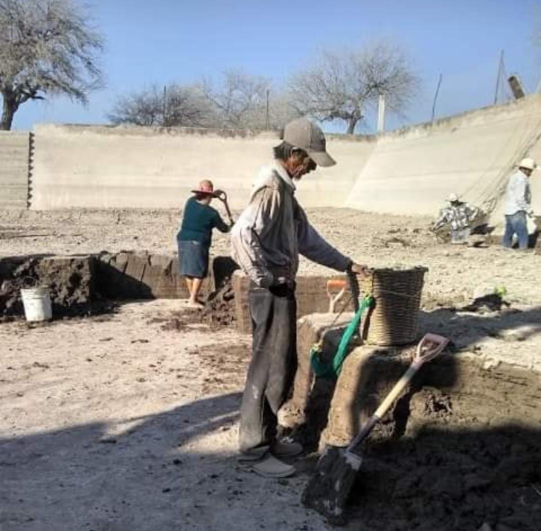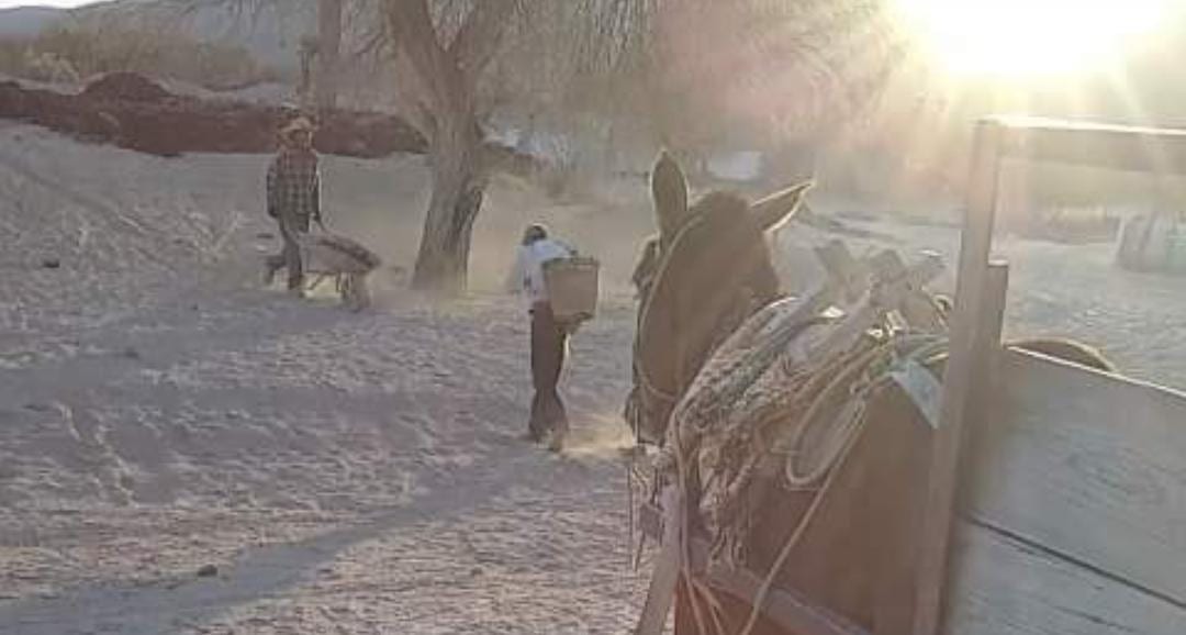 Aquí vemos a gente trabajando haciendo sus labores diarias, con muy poca agua disponible, la poca que obtienen.