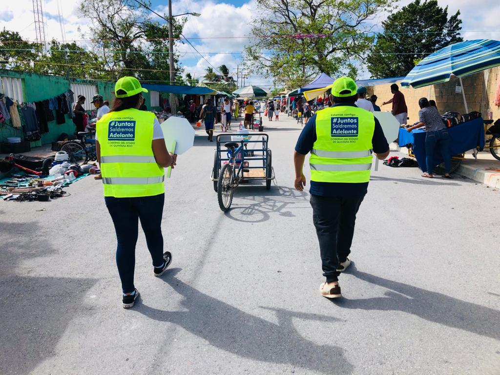 Cabe mencionar que los integrantes del programa estatal Enlaces de Participación Social, que puso en marcha el gobernador Carlos Joaquín González y que Puerto Morelos respaldó desde el inicio, repartieron hoy, en el tianguis de la colonia 23 de Enero, gel antibacterial y cubrebocas, además de invitar a la población a mantener la sana distancia.