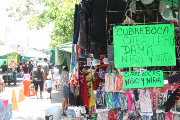 Cancún.- Por sexta ocasión, se realizó hoy el conocido tianguis de la Región 100, limitado al 30% de operación, lo que significa solo 250 puestos en total, a través de la rotación de los distintos giros en cada edición.