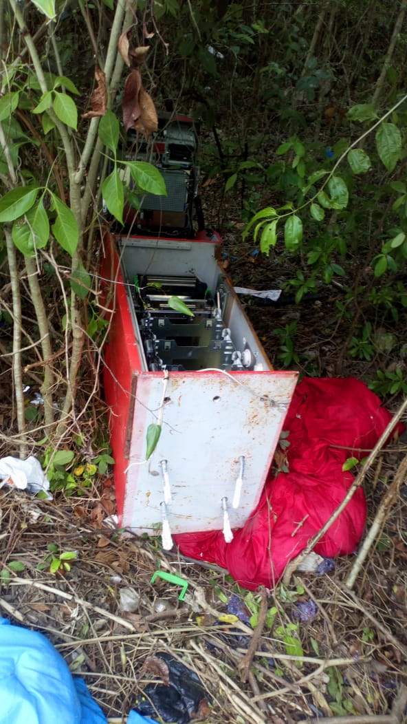 Cancún.- Justo al final de la avenida Chac Mool, en la Región 525 de Cancún, unas personas encontraron dentro del monte un cajero automático, por lo que llamaron al número 911 para hacer el reporte.