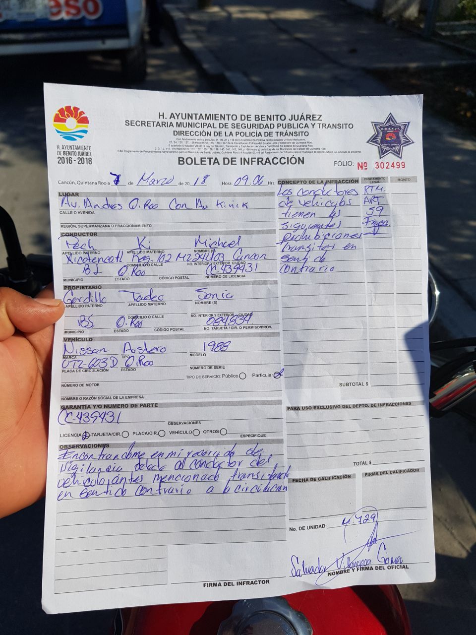 Cancún.- Esta mañana, agentes de Tránsito multaron a personas que desde días atrás han exhibido un “gran bache” en las avenidas Andrés Quintana Roo y Kinik de Cancún.