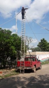José María Morelos.- Una verdadera hazaña tienen que realizar trabajadores del ayuntamiento encargados del mantenimiento del alumbrado público subterráneo, servicio que por años ha sido problemático, razón por la que muchas administraciones en el pasado prefirieron dejarlo en el abandono.El servicio de alumbrado público subterráneo en los nuevos asentamientos es sin duda un paso a la modernidad, pero ha sido el dolor de cabeza de las autoridades municipales ya que, cuando un foco se funde, necesitan rentar los servicios de una grúa para que los eléctricos suban a repararlo. La otra opción es arriesgar sus vidas al subir en una altísima escalera, que es sujetada por unos cuatro trabajadores más con cuerdas para alcanzar el brazo, que dista del poste poco más de metro y medio.