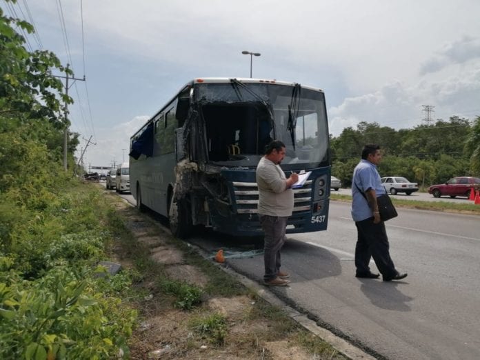 El accidente ocurrió en el carril de sur a norte (de Tulum hacia Playa del Carmen) en el kilómetro 279, cuando esta Urvan frenó de forma intempestiva, al parecer para dejar a un pasajero, lo que cortó la circulación de un autobús de transporte de personal, del hotel Único Beach, que lo golpeó por detrás, sacándolo de la carretera.