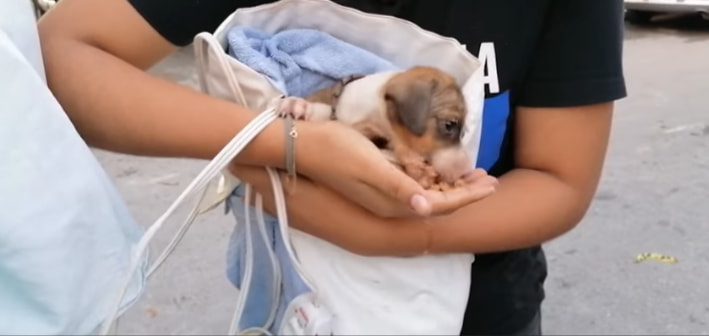 Un usuario de redes sociales, Dani Santos, documentó los hechos en fotografías, la mejor de todas: la del perrito a salvo.