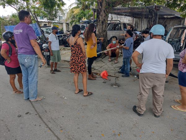 Fueron grandes los corazones que estuvieron detrás del rescate del “Kibi”, perrito que cayó a un pozo de absorción ubicado en el cruce de la avenida 99 con calle 33 de la colonia Flamingos II.