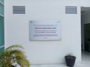 En la placa del edificio se puede leer que fue inaugurado por Roberto Borge y Mauricio Góngora.