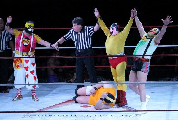 Cancún.- Ya está definida la cartelera principal de la función de Lucha Libre Cancún (LLC) de este 1 de diciembre en Arena Colonos, con uno de los tríos más carismáticos del pancracio, el trío Fantasía, integrado por Súper Muñeco, Súper Ratón y Súper Pinocho, quienes regresaron a la Arena México este pasado 17 de Noviembre con gran éxito.