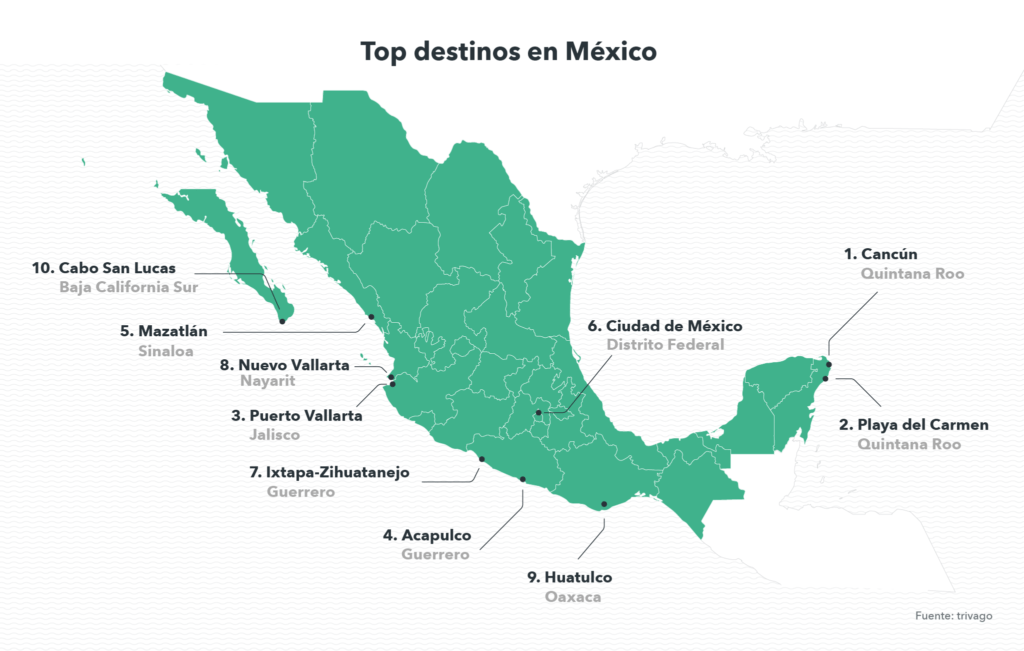 Los destinos que en esta temporada estuvieron a la alza son: Cabo San Lucas, Tulum, Cozumel, San José del Cabo e Ixtapa-Zihuatanejo lo que representa un aumento bastante significativo en las búsquedas de alojamiento si se compara con las búsquedas en promedio que obtienen durante todo el año.