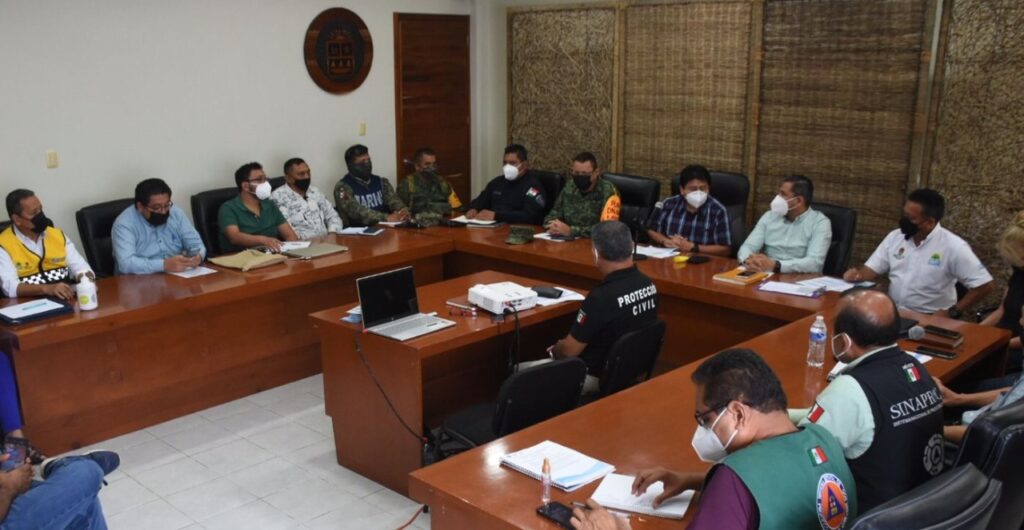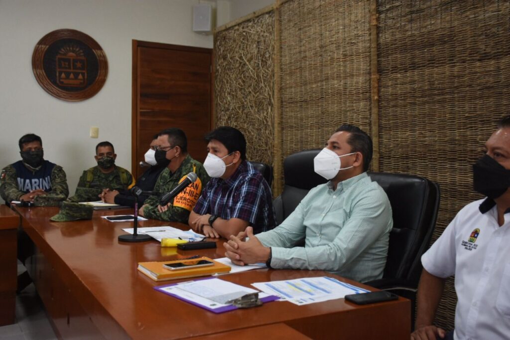 Con la presencia del comandante de la 34ª Zona Militar, general brigadier DEM José Luis Vázquez Araiza, durante la sesión se informó que a partir de las 17:00 horas de este miércoles 18 de agosto, se restringe el acceso a la zona costera y sólo podrán circular trabajadores de hotelería y autoridades preventivas.