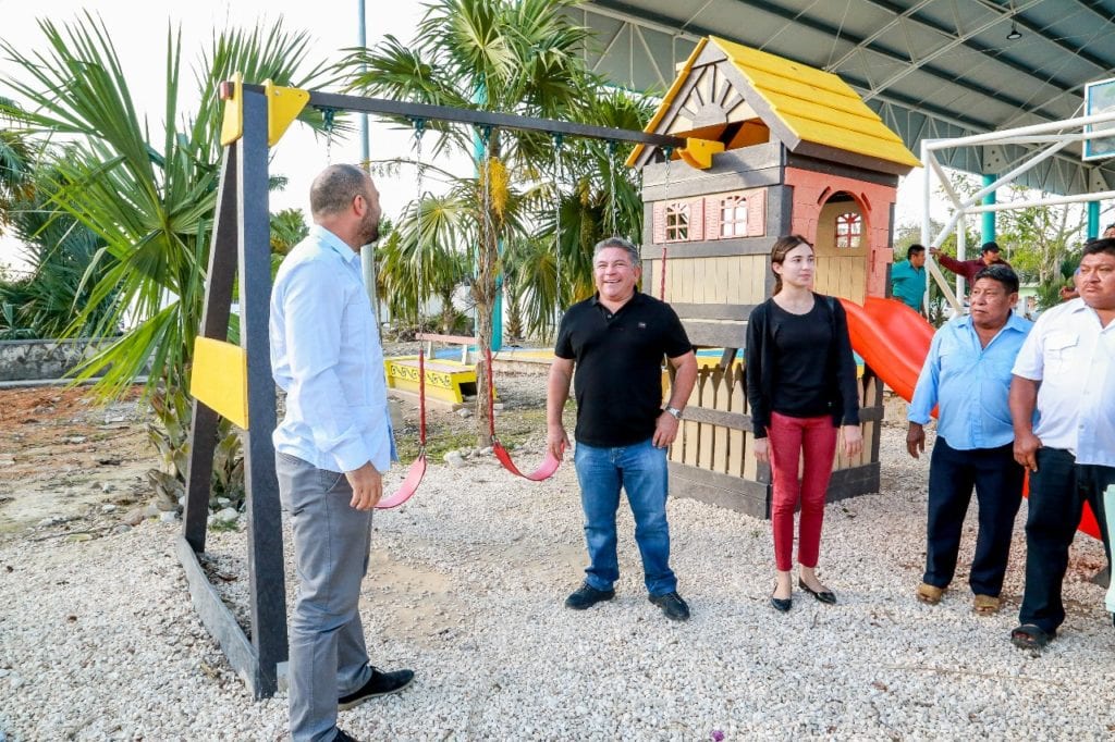 Tulum.- Con una inversión de 7 millones 800 mil pesos, la comunidad de San Juan de Dios, ya cuenta con un domo de usos múltiples, alumbrado público, pavimentación de calles y un parque infantil, con lo cual el presidente municipal, Víctor Mas Tah, con el apoyo del gobernador del estado, Carlos Joaquín, cumple con el propósito de dotar de mejores servicios a los habitantes de las comunidades rurales de este destino turístico.