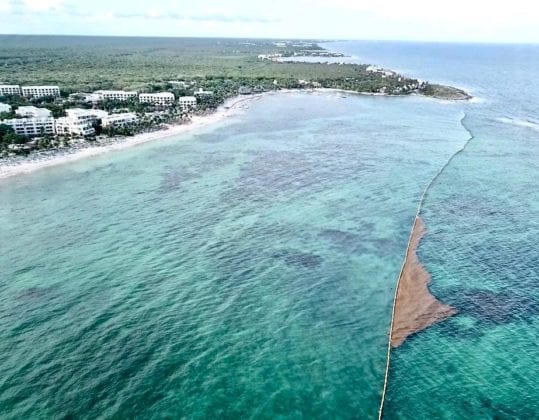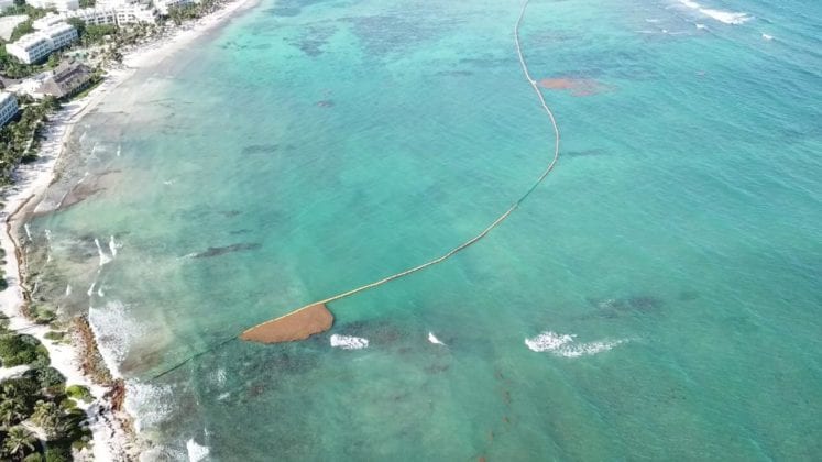 Barrera instalada por hoteleros en Akumal frena 75% de sargazo