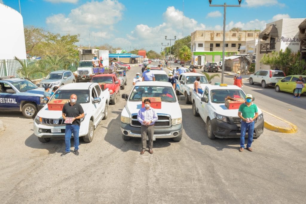 Desde temprana hora, las brigadas se reunieron en las cercanías de la Casa de la Cultura y la Expofer Tulum, por lo que una vez que los vehículos estaban llenos de alimentos y las brigadas listas, se les dio el banderazo de salida para acudieran a visitar a las familias tulumnenses que están cumpliendo con las indicaciones de las autoridades sanitarias de mantenerse en sus hogares y sana distancia en tratos con terceros.