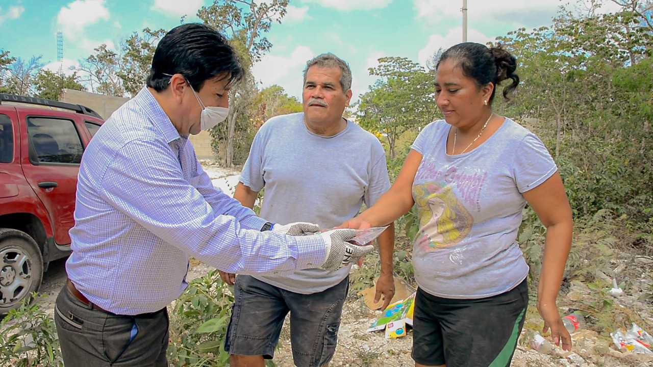 Posteriormente, el presidente municipal, Víctor Mas Tah, acompañó una cuadrilla que acudió a la colonia “Cristal” en donde platicó con los jefes de familia y les entregó el apoyo establecido para este día en estos dos centros de población de reciente creación e insistió que deben tomar las medidas necesarias y acudir al médico cuando presenten temperatura alta, tos seca, dolor de cabeza, vómitos y otros malestares severos.