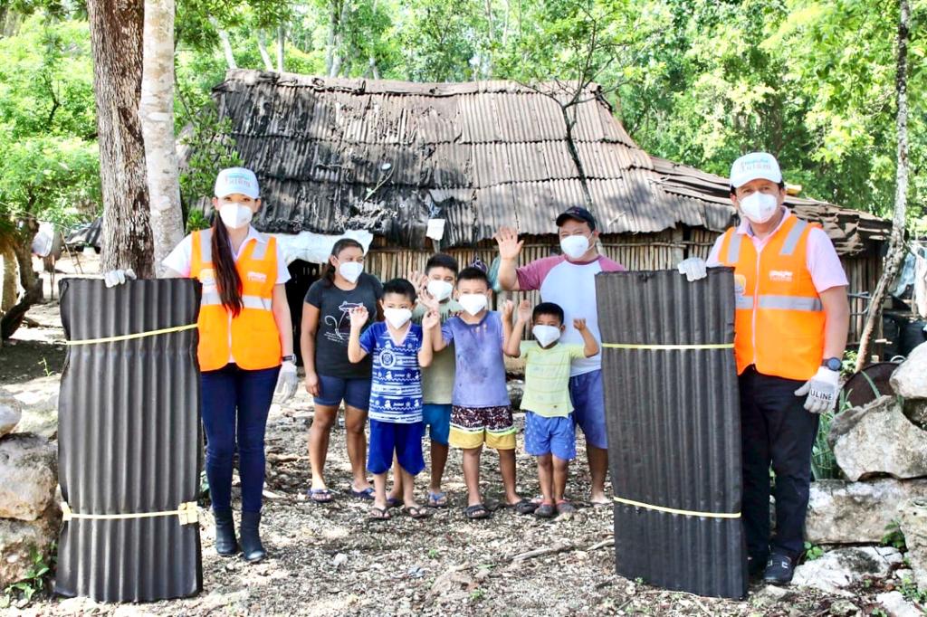 En sentido, el presidente acudió en compañía de su esposa, Celia Aguilar Mas, a auxiliar a las familias de las comunidades de Chanchen I, Sahcabmucuy, Hondzonot, Yaxché y Chanchen Palmar, lugares en los que entregaron laminas a las familias afectadas por la tormenta.