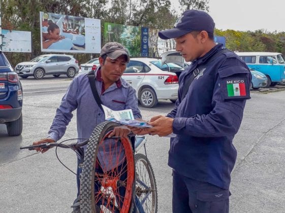 Tulum.- Para prevenir accidentes a usuarios de bicicletas la Dirección de Tránsito, a cargo de Hafid Miranda García, puso en marcha la campaña “Concientización Vial a Ciclistas” en diversos puntos de la ciudad.