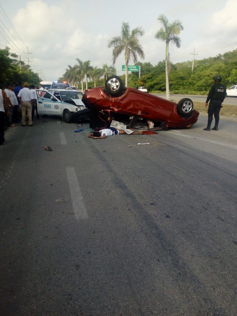 Tulum.– Tres personas habrían fallecido producto de un accidente entre un taxi del sindicato “Lázaro Cárdenas del Río” de Playa del Carmen y un automóvil particular en el que viajaba una familia, cerca de Bahía Príncipe.