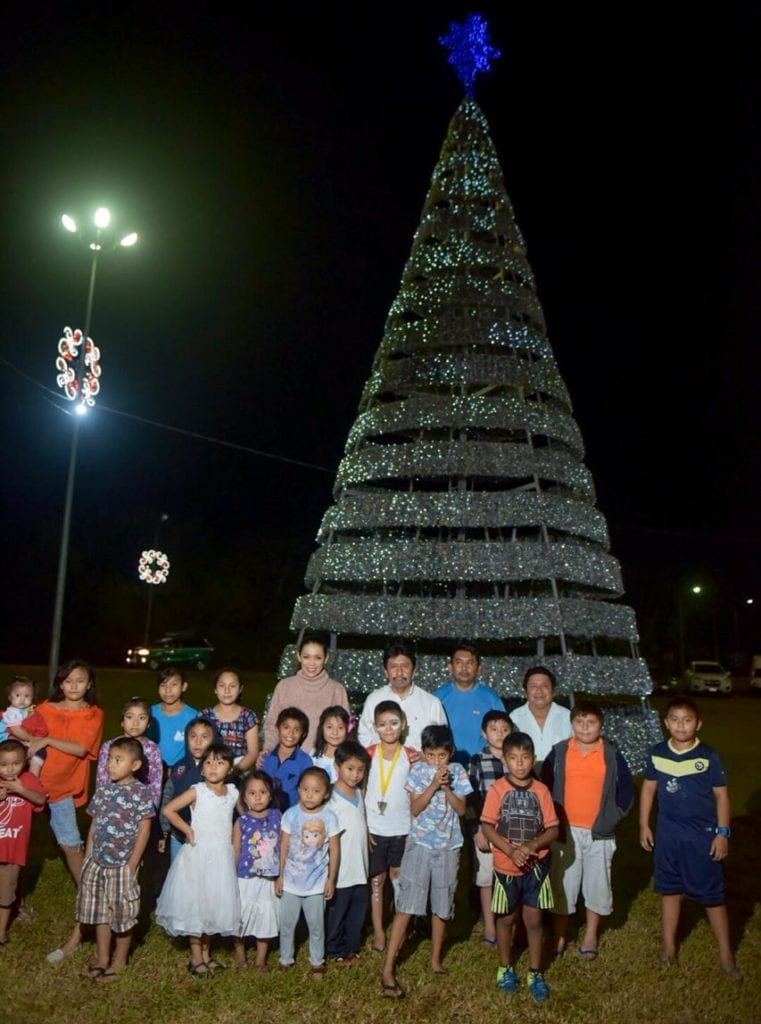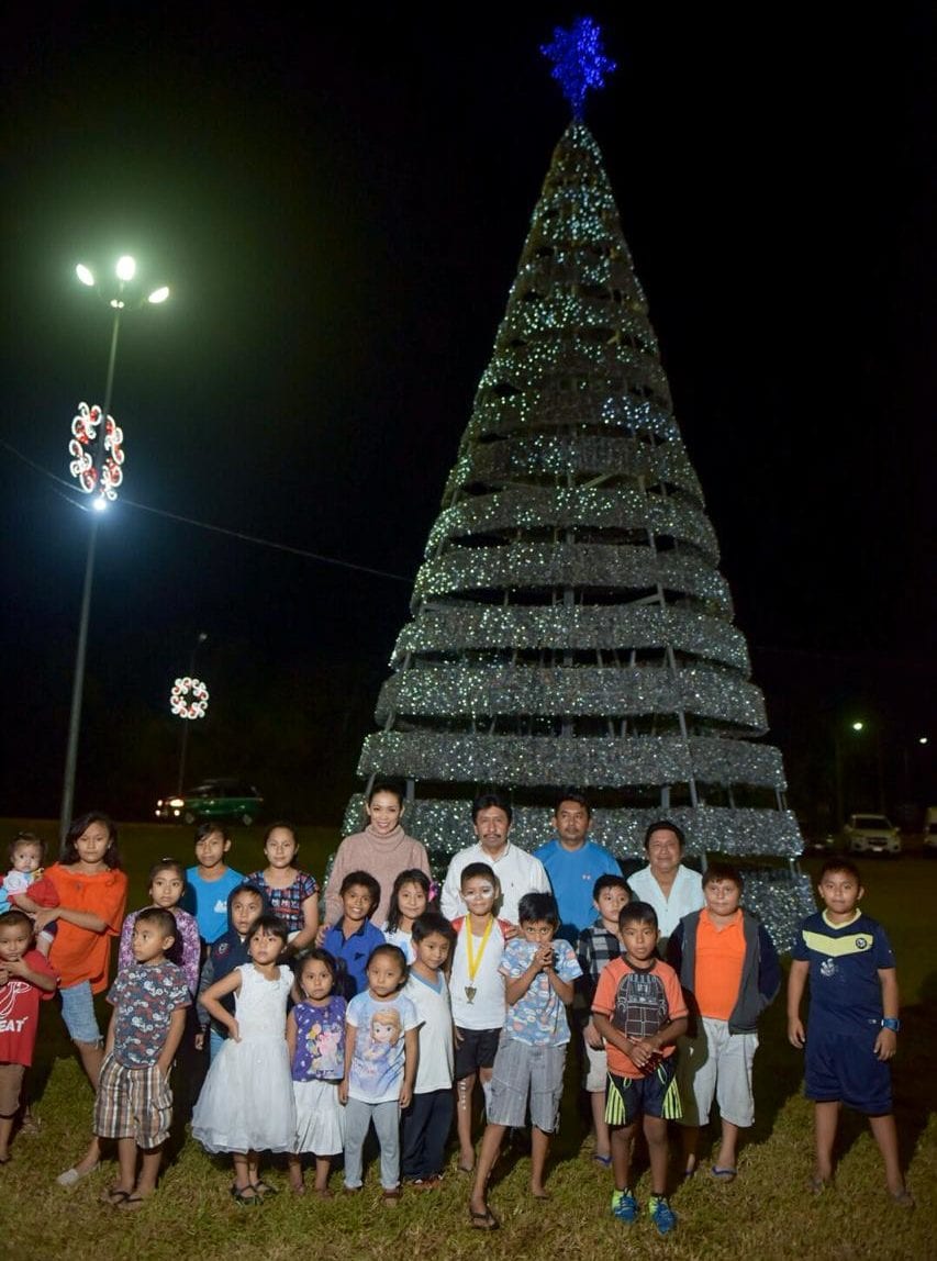 Al acudir acompañado de la presidenta honoraria del DIF Municipal, Celia Aguilar Mas, funcionarios municipales y familias de Cobá, a la ceremonia del encendido de luces del árbol navideño colocado en la Glorieta, resaltó la importancia de ofrecer un municipio en donde hay armonía, actividades productivas y sitios de interés.