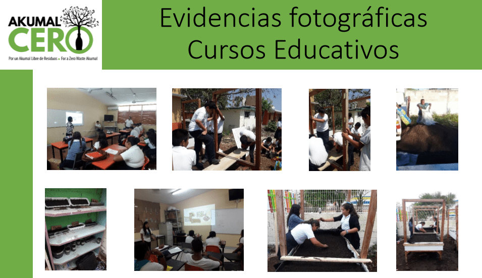 Por otra parte, se impartieron cursos educativos de “Abono natural y composteo de residuos orgánicos” y también el de “Huerto comunitario”. Con ello se capacitó a los estudiantes de primer grado de telesecundaria, quienes se encargaron de construir la instalación con materiales donados por el Centro Ecológico Akumal Club, Akumal Caribe y Transformar Educando A.C.