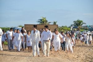 TULUM, 21 de Septiembre de 2019.-Con una ceremonia maya realizada durante el amanecer en Playa Maya, el Ayuntamiento de Tulum celebró el Día Internacional de la Paz, con la presencia del presidente, Víctor Mas Tah y la presidenta honoraria del DIF Municipal, Celia Aguilar Mas, actividad que se realizó de manera simultánea en los once municipios del estado de Quintana Roo.
